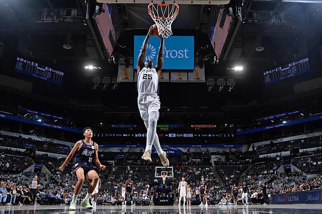 瓊斯在夏季聯(lián)賽期間的表現(xiàn)令人刮目相看,他也是得到了馬刺送出的雙向合同并且留在了球隊(duì)中。不過在之前兩場季前賽比賽中,他的表現(xiàn)并不能算是特別突出,他的得分能力并沒有完全發(fā)揮出來。就在大家對他的表現(xiàn)有些擔(dān)心的時(shí)候,他在本場比賽中也是將自己的特點(diǎn)再一次發(fā)揮了出來,他也是為球隊(duì)的勝利做出了巨大的貢獻(xiàn)并且證明了自己的價(jià)值。