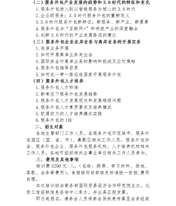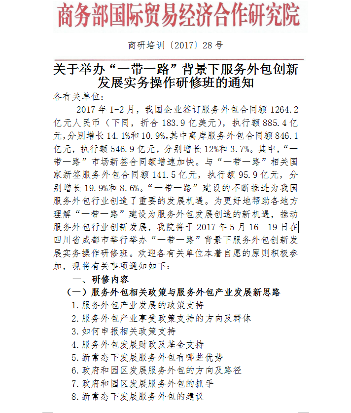 關于舉辦“一帶一路”背景下服務外包創(chuàng)新發(fā)展實務操作研修班的通知