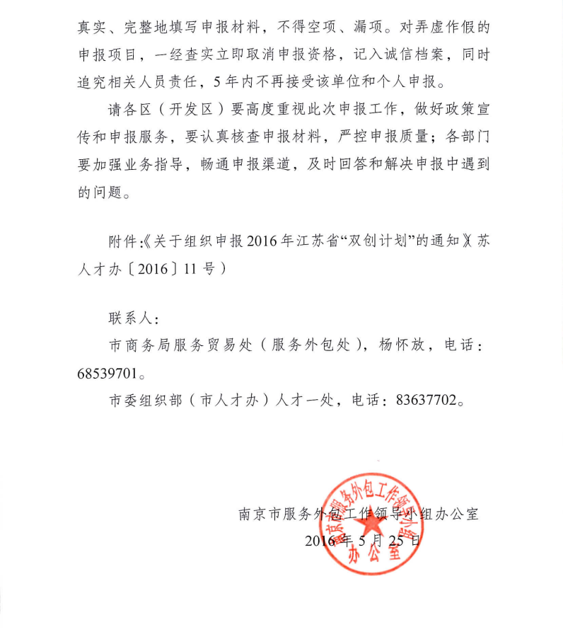 附件:關(guān)于組織申報2016年江蘇省“雙創(chuàng)計劃”的通知(蘇人才辦〔2016〕11號).pdf