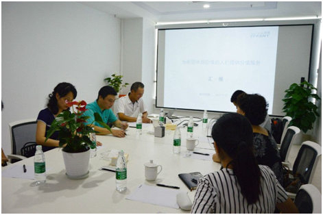 公司總經(jīng)理田為偉和行政總監(jiān)王筱麗、渠道總監(jiān)張貴州陪同領導參觀公司和匯報工作。